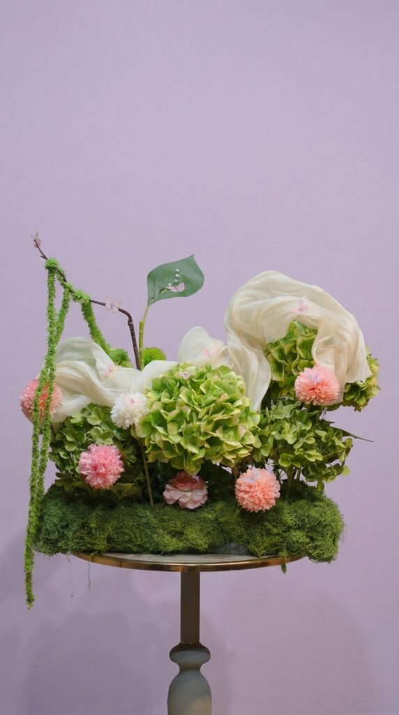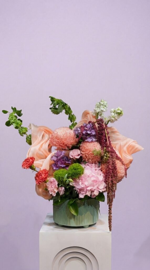 Violet bloom deko flowers vase